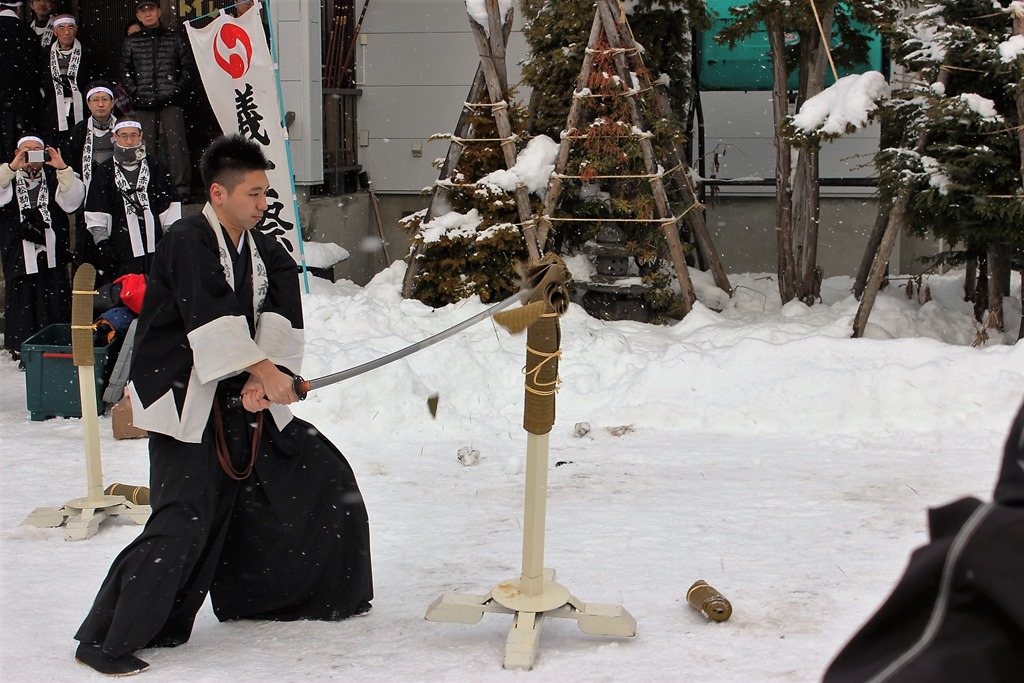 こちらは北海道試し斬り研究保存会の皆さんが居合奉納を行っているところ。