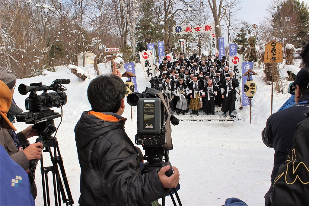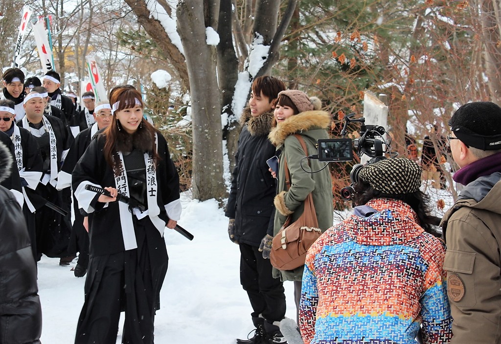 こちらは砂川観光協会の動画の撮影場面です。どうやら義士に扮装している若い女性が台湾の人気ブロガーさんのようです。