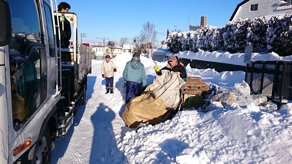 晴見町内会としては、今年最後の廃品回収で、12月は雪も積もって一ヵ所に集められないので、業者さんの車で町内5ヵ所を回ってもらいながら回収です。