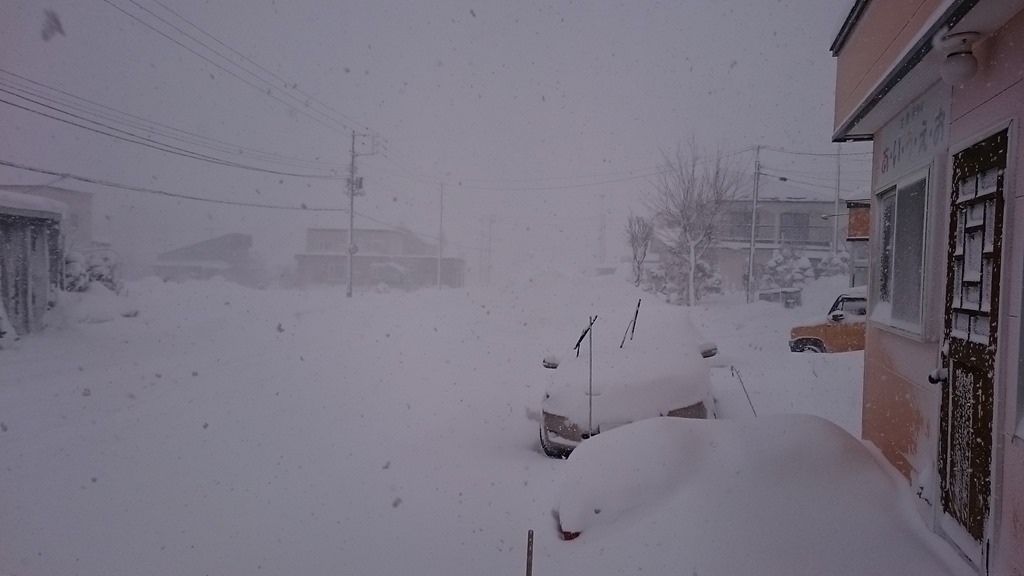 吹雪状態は一日中続き、道路を走るのも危険なほどで、早々に帰宅しました。天気予報で明日はさらに気温も下がり荒れた天気は続くということですので、注意が必要です。