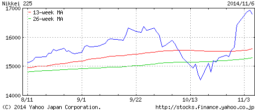 10月31日に日銀が追加金融緩和を決め、世界同時株高のきっかけを作ったと言われています。