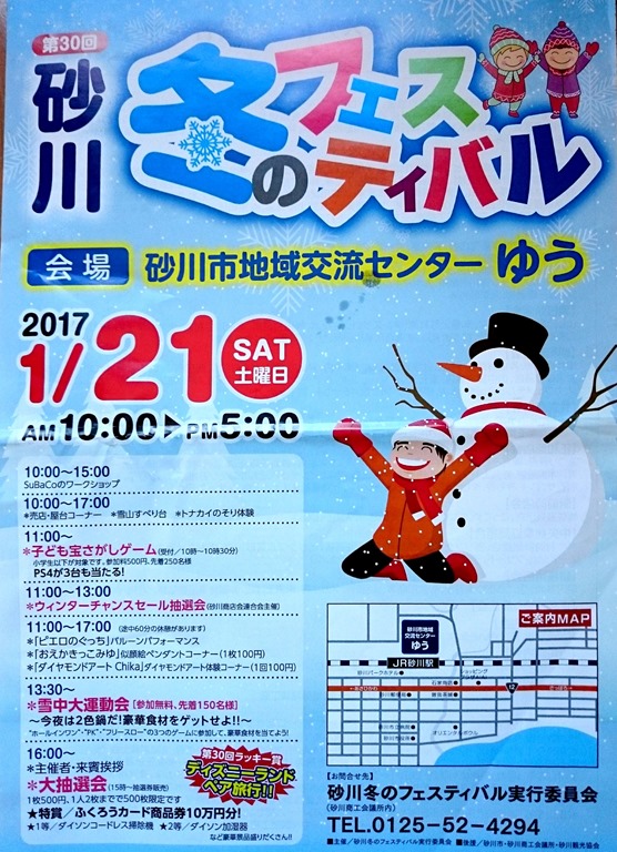 明日、開催される「砂川 冬のフェスティバル」のポスターです。今年は記念すべき第30回ですが、始まってから30回になるんですネ。