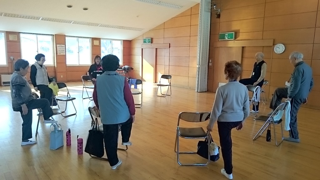 本日のいきいき運動推進員さんも一人で、たまには会話も楽しみながら初回のニコニコ広場は無事に終了しました。今年も毎月、第3金曜日に体を動かします。