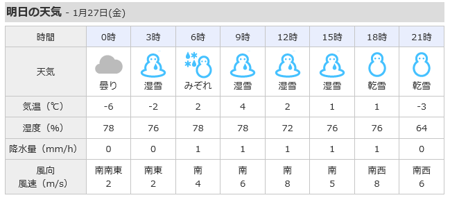 本日の砂川は割と暖かかったのですが明日の天気予報を見てビックリです。