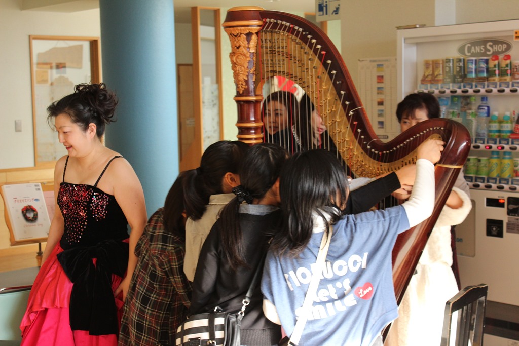 また、さすがの「ふれあいコンサート」で、松浦さん演奏のハープを触れられる機会もあって、子ども達も大喜びでした。
