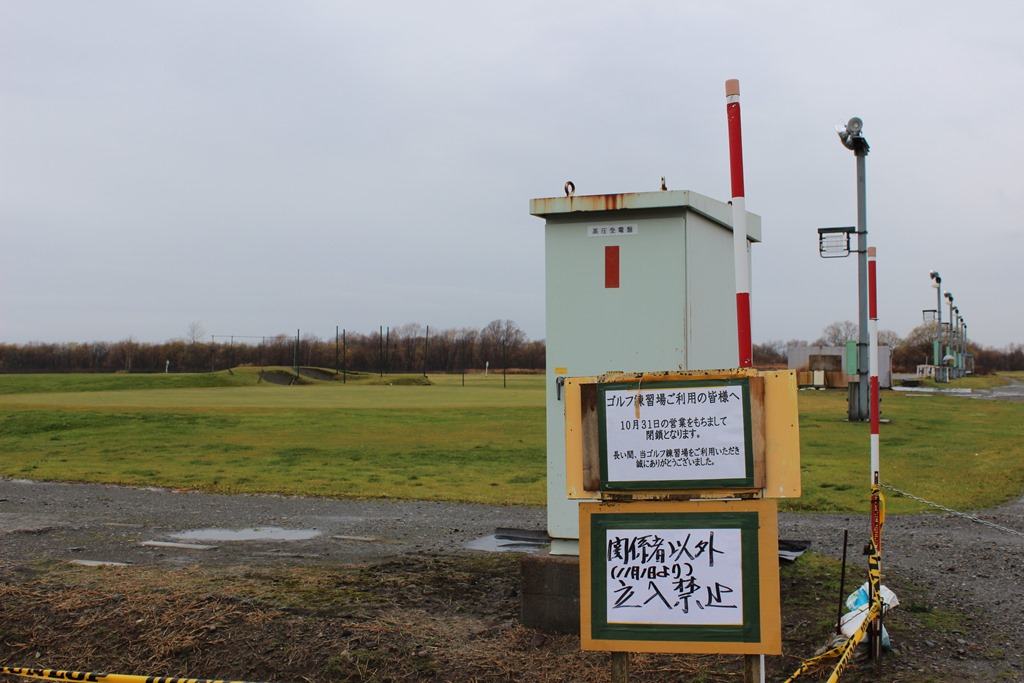 24年間続いたゴルフ場ですが、シーズンの最終日だけではなく、ゴルフ場の閉鎖日でもあるので行って来ました。上の写真はゴルフ練習場です。こちらは10月31日で閉鎖されていたのを知りませんでした。