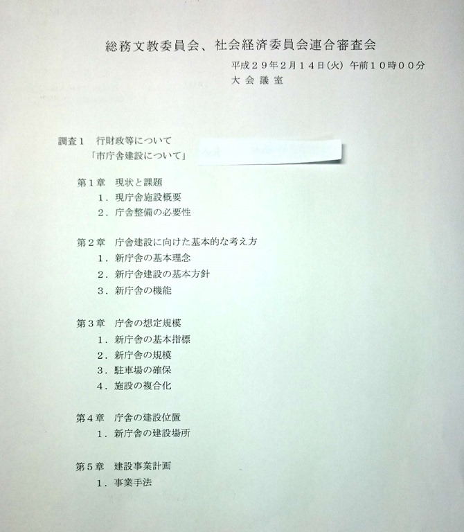 砂川市議会は市役所の新庁舎建設に関する件は特別委員会を設置せず、所管のある総務文教委員会で審議することにしています。従って、一般質問もできます。