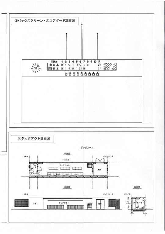 野球場は隣接する民地を買収して公認野球規則の規格まで拡張します。また、内外野の改修、バックスクリーン・スコアボード改修、ダッグアウト改築などなど大型事業となります。