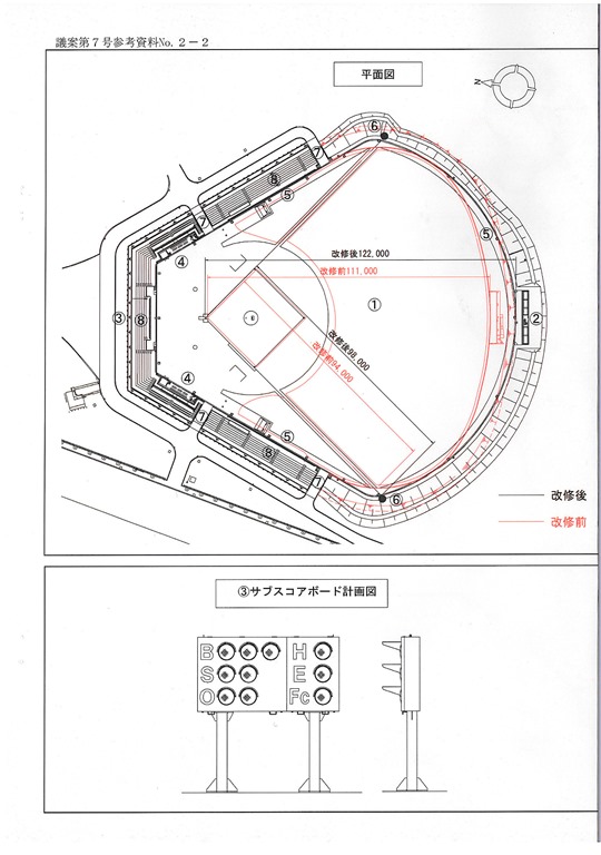 ところで、本日、市営野球場改修事業の資料が説明されました。下の写真のような物です。