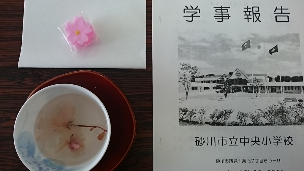 式までの待つ間に出していただいたのがお菓子と「桜茶」です。春を呼び、新しい旅立ちへの卒業式にぴったりのご接待が嬉しかったです。
