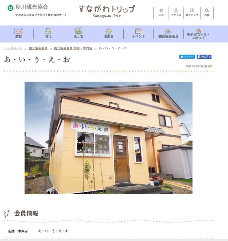 我が家の小さなお店「あ・い・う・え・お」も観光協会の会員なので、観光協会会員のページに五十音順トップに掲載されていました。