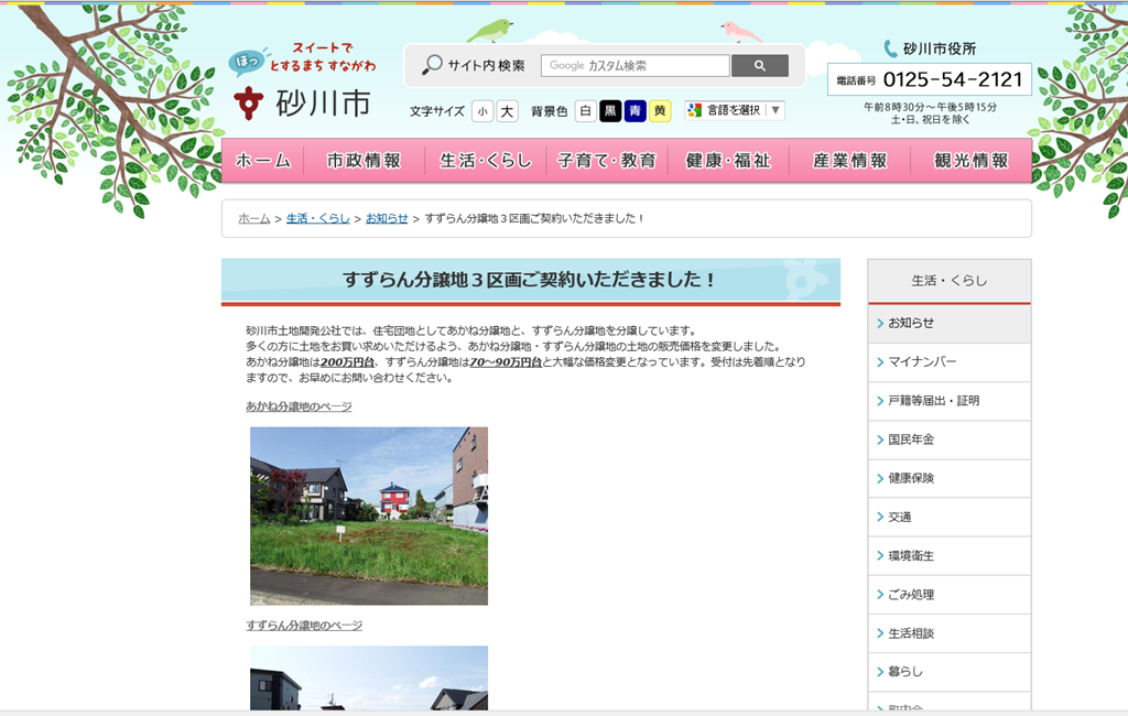 砂川市のHPを見て驚いています。