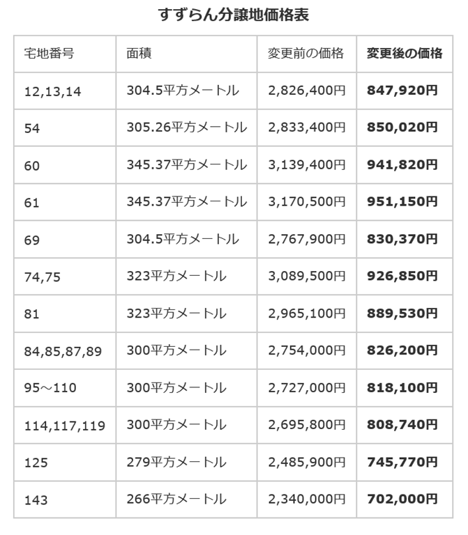 4月1日からすずらん分譲地の土地価格を70%OFFにした結果、10日間で3区画売れたそうです。