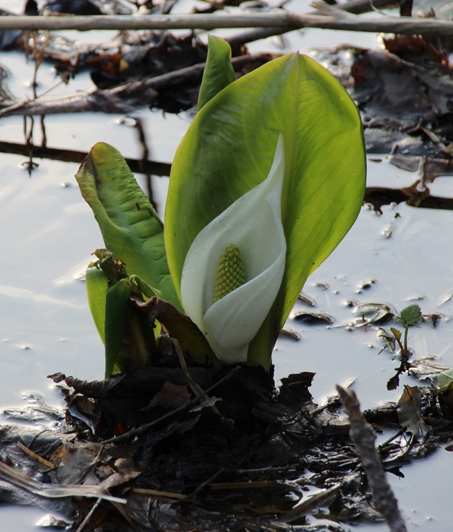 まだ赤ちゃんですが、水芭蕉が咲いています。