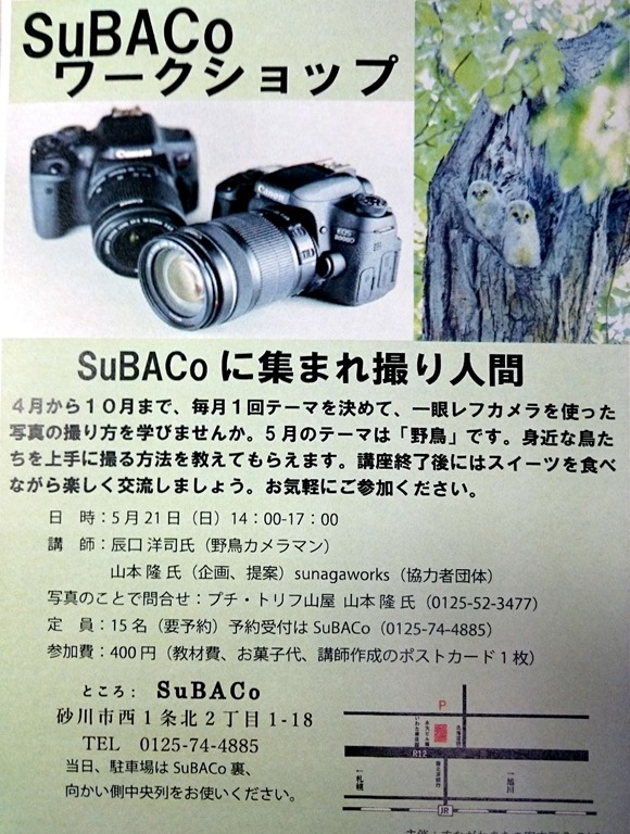 上のチラシは次回、5月21日(日)の「SuBACoに集まれ撮り人間」のものですが、本日はその第1回目に行ってきました。