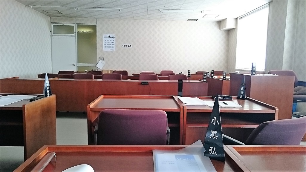 写真は市役所3階にある委員会室です。午前10時から行われた「社会経済委員会」のお昼休みに写しました。向かい側は副市長をはじめ、部課長が座る答弁者席で、右にある机は委員長席。