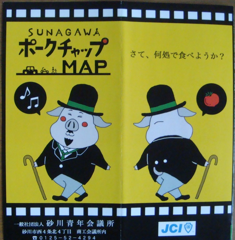 上の写真は砂川青年会議所の皆さんが取り組んでいる「ご当地グルメ」に「ポークチャップ」を、のマップです。