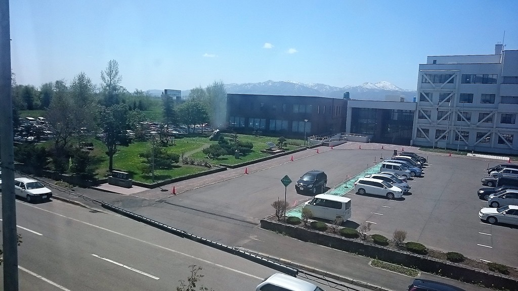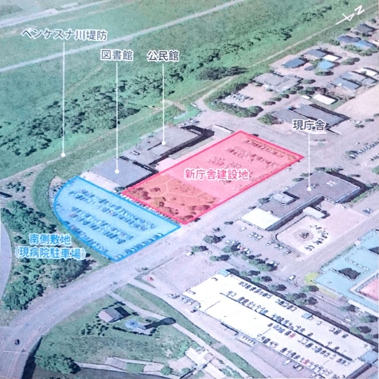 上の写真は現庁舎の2階の窓から建設予定地を見たところです。