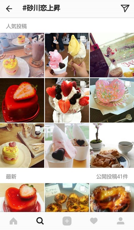 現在も継続中ですが、じゃらん5月号に掲載され、『4月20日から5月31日までの間、ハッシュタグ「#砂川恋上昇」をつけて砂川スイーツの写真を投稿してくださったかたの中から抽選で、すてきな商品をプレゼントします。』というイベントをやっています。上の写真を見ると、本日午後4時までの投稿数は41件。
