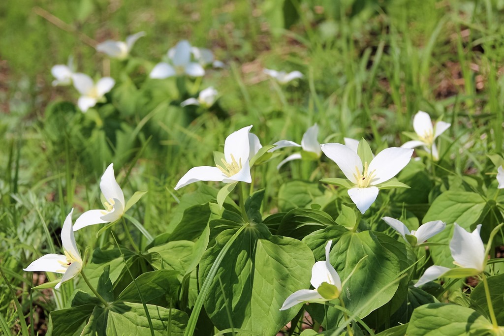 上の写真は『砂川市内で、エンレイソウがたくさん咲いているところがある!』の情報をいただきましたので、早速行って来ました。場所は市内の豊沼地区で豊沼小学校近くの法面の傾斜がきつい所でした。