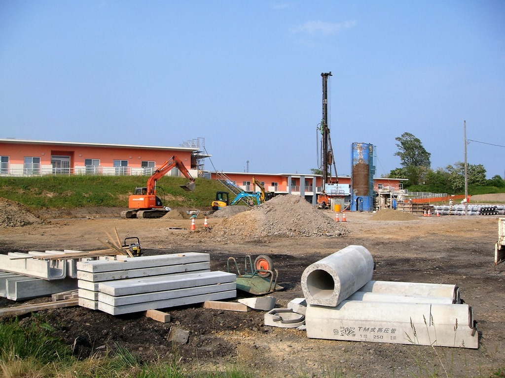 上の写真は特別養護老人ホーム「福寿園」に増設される地域密着型特別養護老人ホームの建設現場の様子です。今は杭打ちが行われていました。