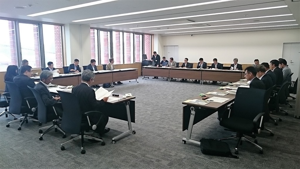 幕別町の職員の方々から説明を受けているところですが、会場は議会の委員会室でもあり、災害時には対策本部が設置される所です。説明を受けた時は3つの会議室の内、仕切りを一つ開放した状態。