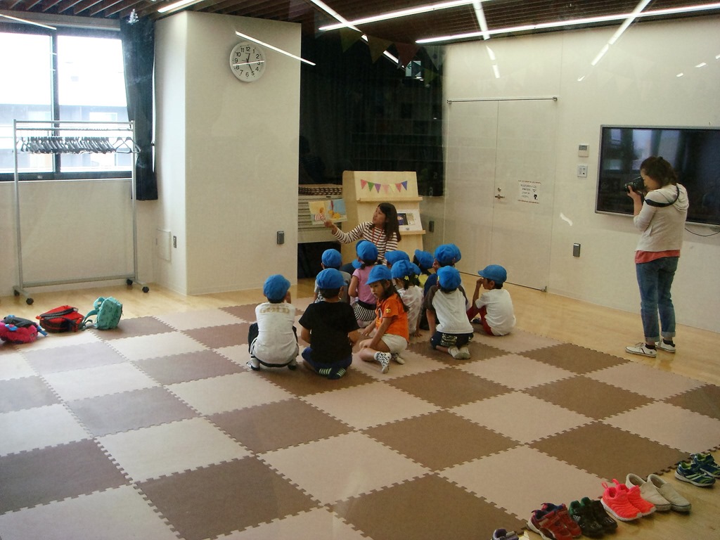 私が行った日も、保育所の子ども達(写真)や養護施設の子ども達が車いすで来ていました。お母さん達も小さい子どもの泣き声や少しドタバタした感じも気にせず絵本に親しめるのが良いと言っておられました。