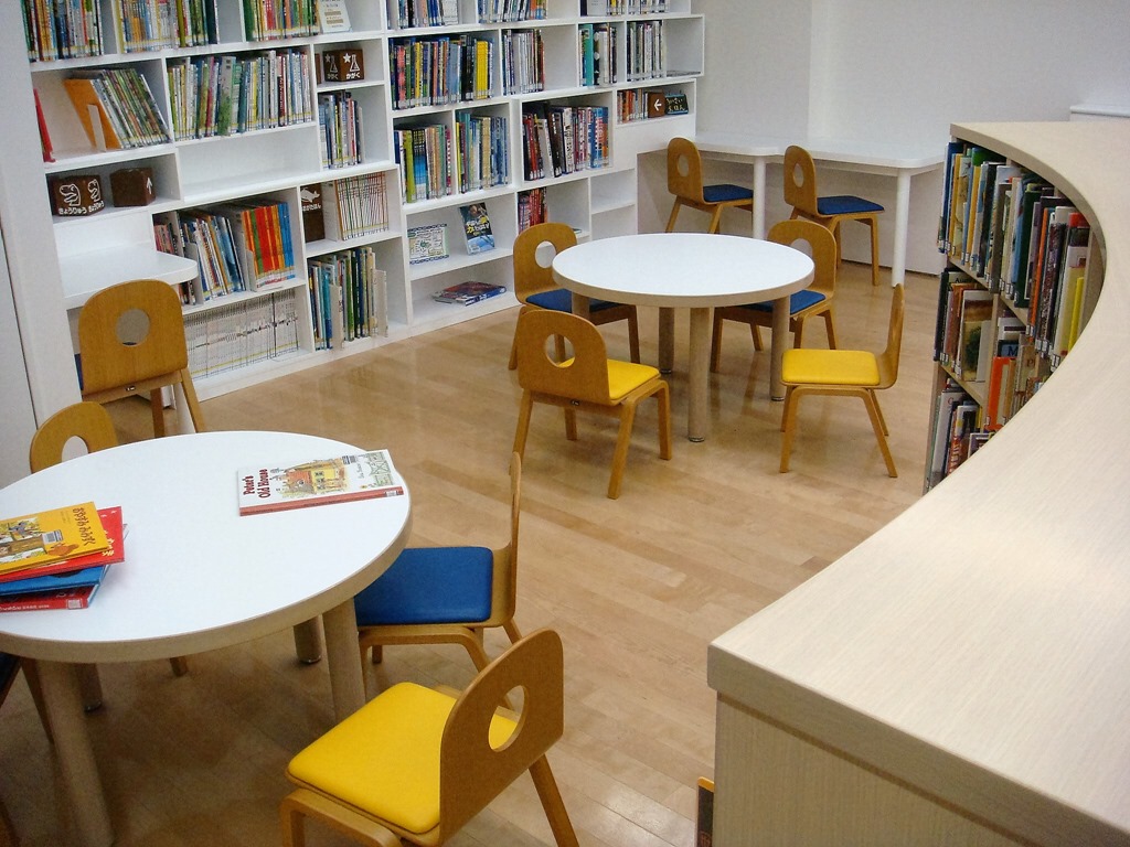 他にも壁で仕切られた「体験型活動室」(写真)、「ボランティア等活動室」もあって、絵本好きの子ども達にとっては最高の図書館でした。
