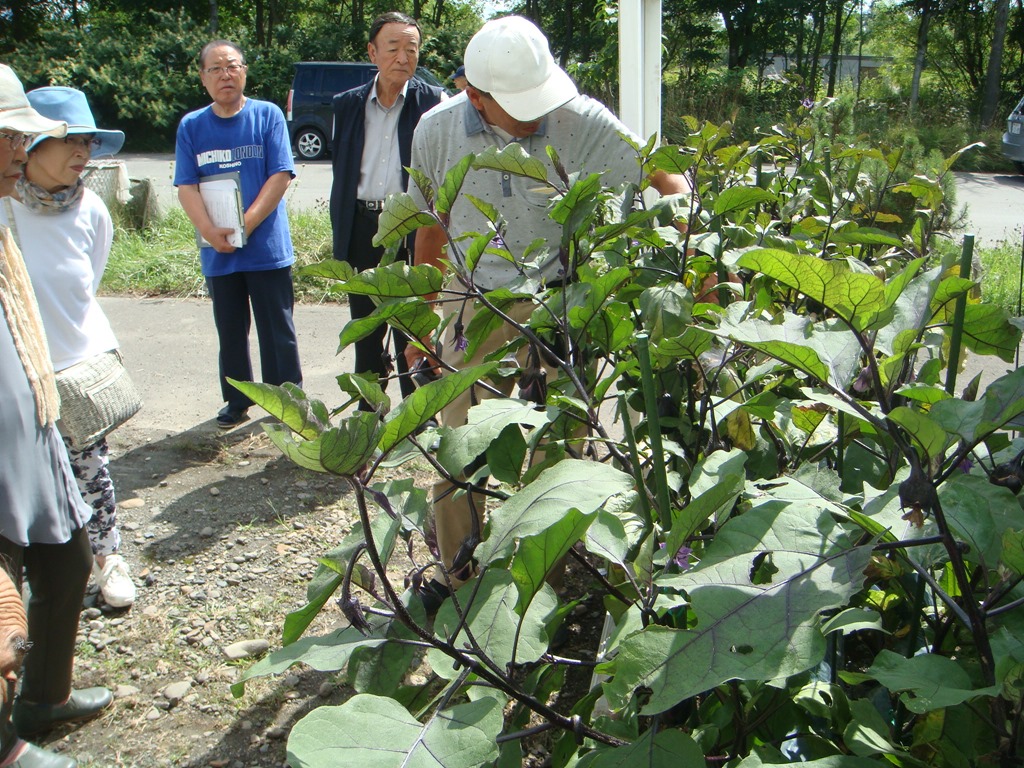 昨日は、新保代表の圃場に自然農法で育てた「ナス」の生育状況や病虫害のことなどを「公益法人 農業・環境・健康研究所 名寄研究農場」の岩谷さんから説明を受けました。