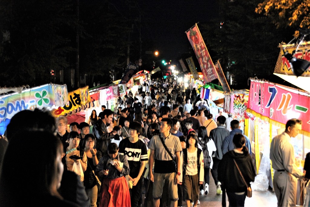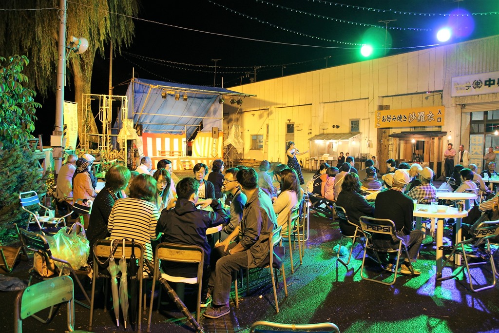露店も少し短くなりましたが、賑わっていましたし、中央市場の駐車場で開催されている「砂川お祭り広場」も途中、雨が降る天候にも関わらず生ビールに焼き鳥と行く夏を惜しんでの賑わいです。