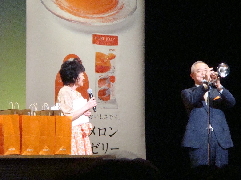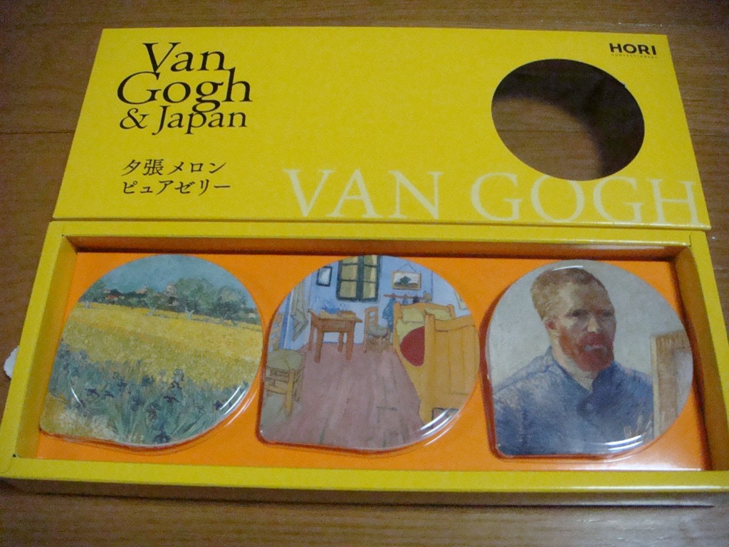 上の左の写真はステージで得意のトランペットを演奏する堀社長。そして、右の写真は、10月15日まで道立近代美術館で開催中の「ゴッホ展」の記念品に販売されている夕張ピュアゼリーで、今後、巡回する全国各地でも販売されるとのこと。