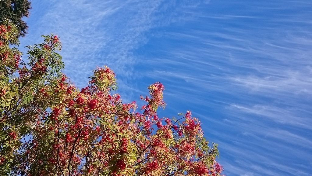 今日はとても良い天気でナナカマドの赤い実。赤トンボの乱舞と秋らしい写真です。
