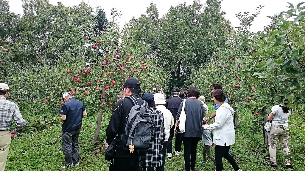 晴見町内会は午前10時に公園前に集まって、徒歩で20分ほどの三谷果樹園まで「りんご狩り」に行きました。参加者は30人ほどでしたが、風もなく気温もちょうど良い天気で秋の町内会行事を無事に終えることが出来ました。