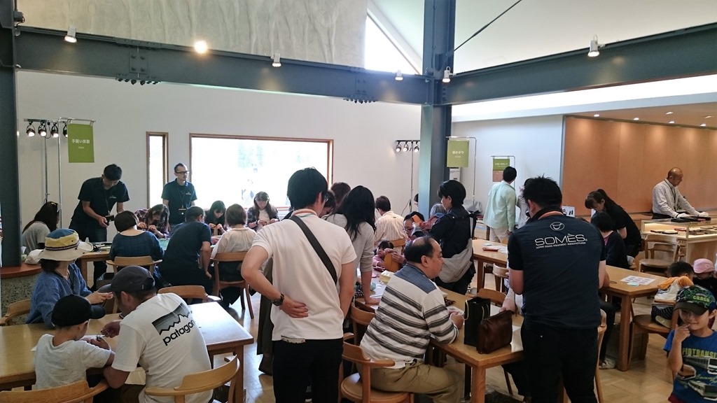 私はお昼前に行きましたが、大変賑わっていました。右の写真はショールームで行われた体験コーナーです。