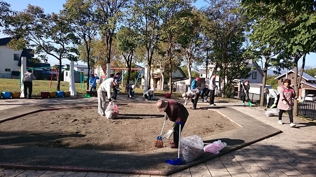 晴見町内会は月の第一日曜日は「町内清掃の日」。秋晴れの朝、みんなでお喋りをしながら公園を中心に掃除をしました。