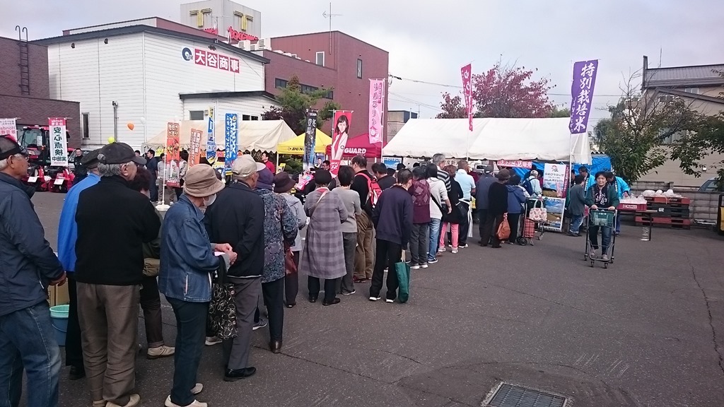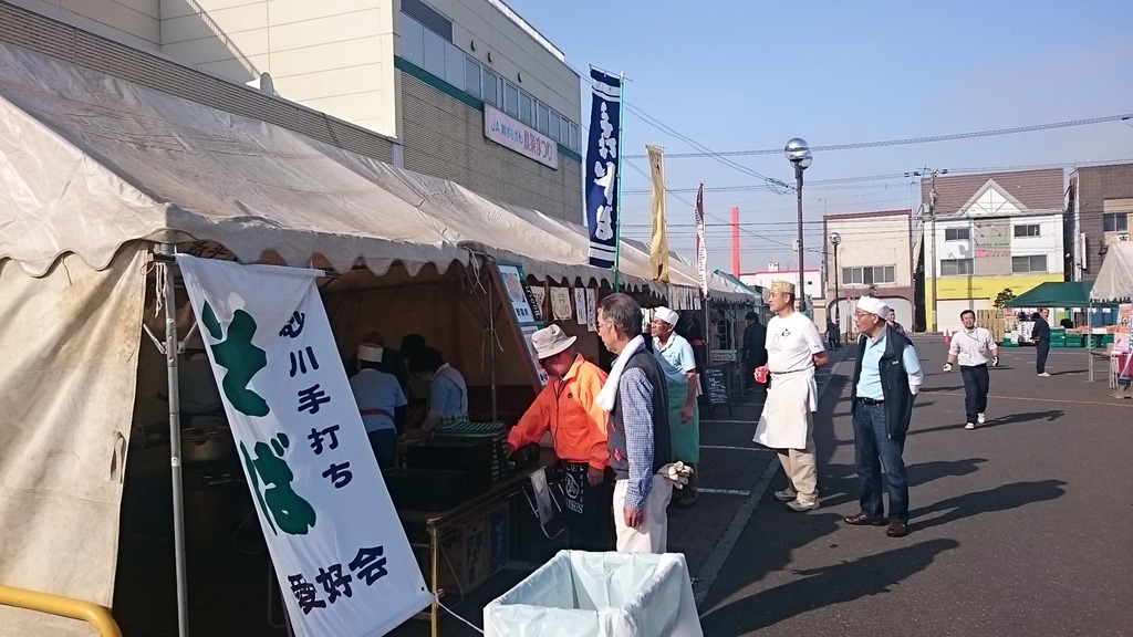 本日、午前10時から農協のスーパー「AiAi」前の砂川市買い物駐車場で「JA新すながわ農協 農業祭」が行われ、砂川手打ちそば愛好会も出店しました。