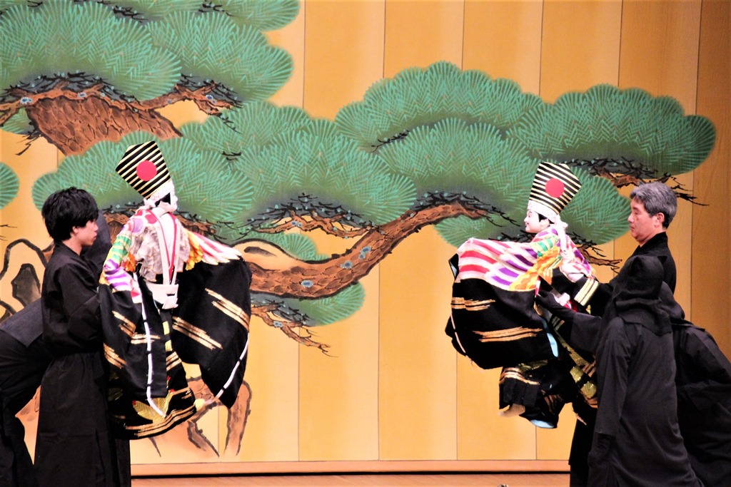 右の写真は50周年記念事業として行われた「さっぽろ人形浄瑠璃あしり座」の演じる「寿式三番叟」です。