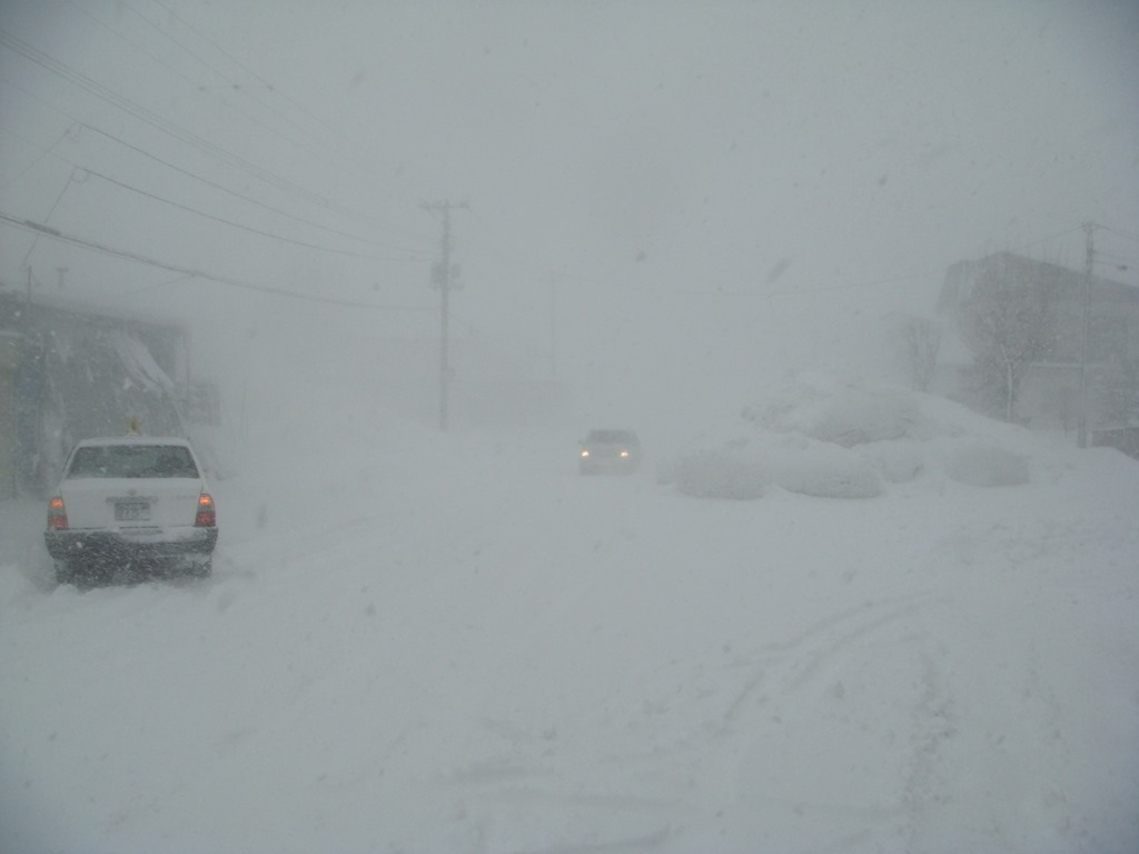 昨日、今日と猛烈な吹雪が続いています。降雪は意外と少ないのですが、風が強く吹き溜まりが出来たり、視界が悪かったりです。