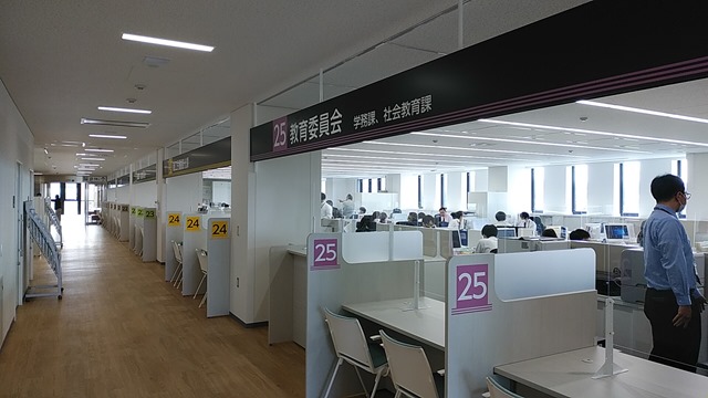 私は旧庁舎の時はよく部長、課長や職員の皆さんの所に行っていました。用事は市民の皆さんからの要望や疑問などを受けた時、直接顔を合わせて話をするためです。