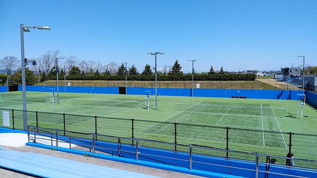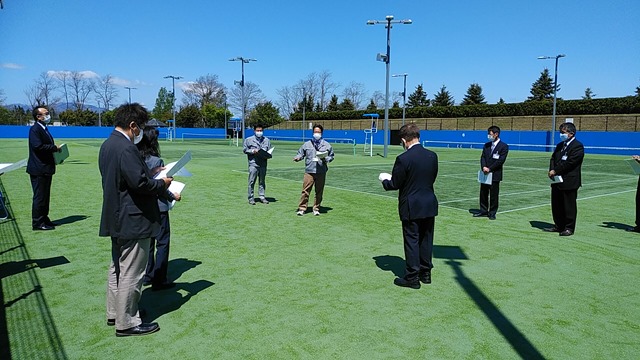 市営テニスコートは5月1日から利用されていますが、多額の費用で改修した内容を確認するための視察。